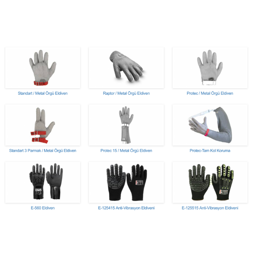 Tanım: Bıçak ve benzeri kesici kullanımlarından kaynaklanabilecek kesilmelere ve yaralanmalara karşı kesin koruma sağlanması amacıyla üretilmişlerdir